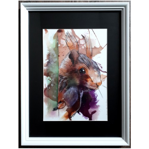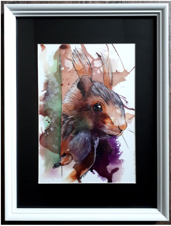 "Splashes" (3), 'Écureuil" (4) et "Regard de chat" (5) sont à l'origine des oeuvres à l'encre de chine de l'artiste peintre Marie-Laure KÖNIG. Vous trouverez leur reproduction sur poster format A4 (21 X 29,7) cm sur papier mat 250 g/m² (pour "Splashes" et "Écureuil") ou 21x21 cm (pour "Regard de chat).