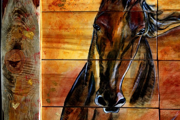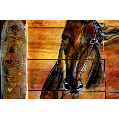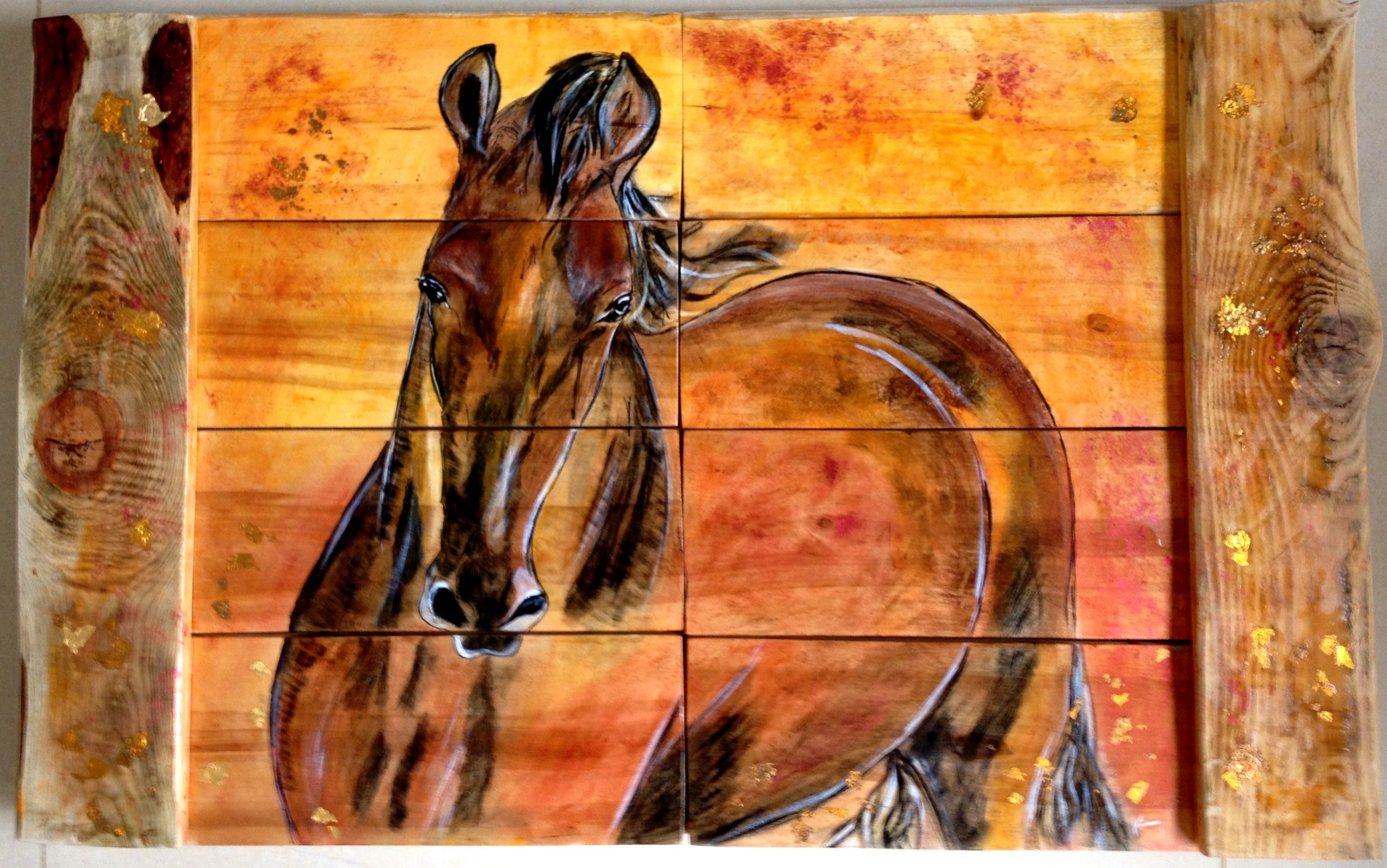Technique mixte et pigments purs sur planches de palette.  Oeuvre unique et originale.